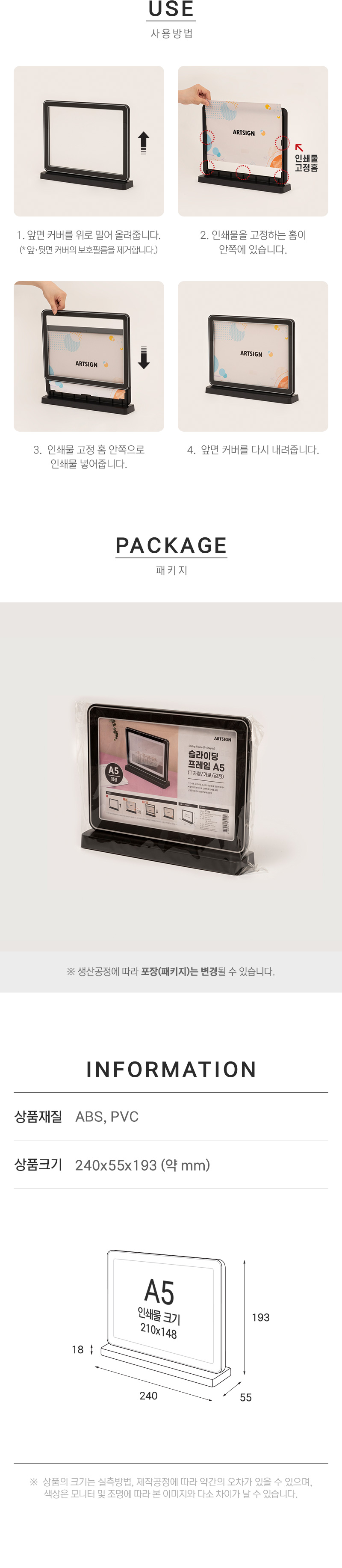 · 사용방법: 슬라이딩프레임에 인쇄물을 삽입하여 사용하세요.