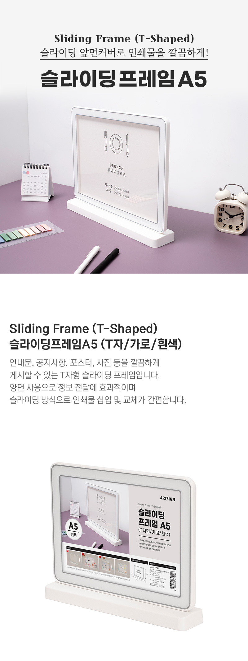 • 슬라이딩프레임A5(T자/가로/흰색)