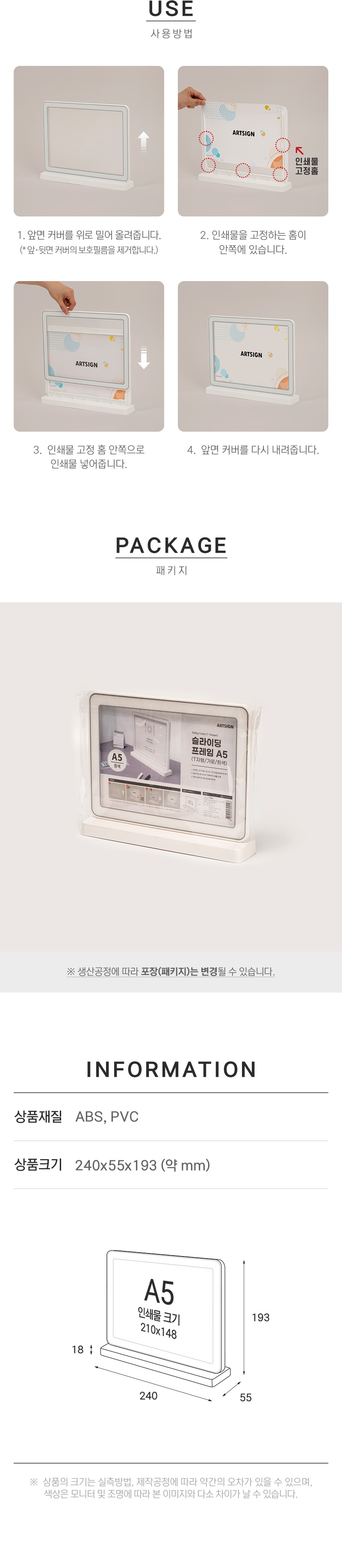 · 사용방법: 슬라이딩프레임에 인쇄물을 삽입하여 사용하세요.