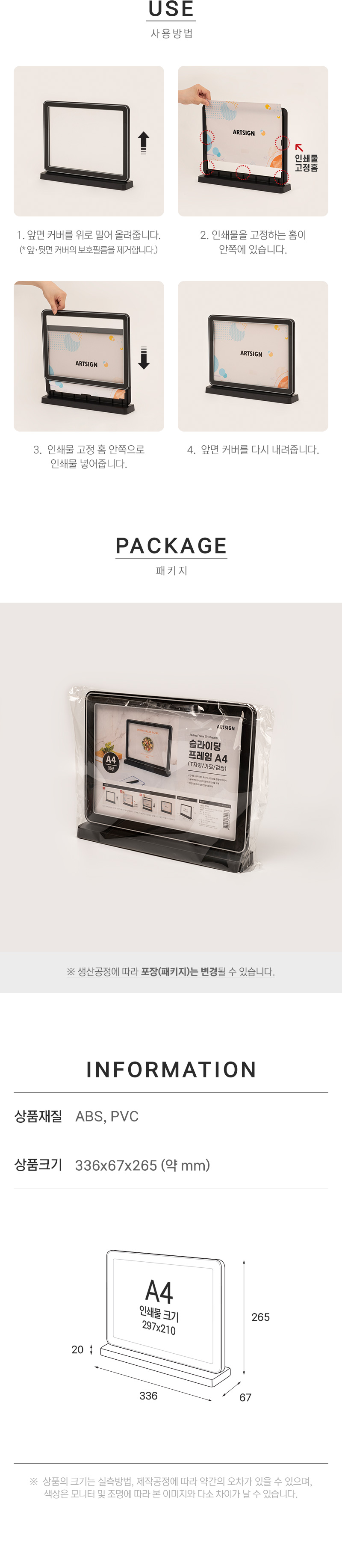 · 사용방법: 슬라이딩프레임에 인쇄물을 삽입하여 사용하세요.