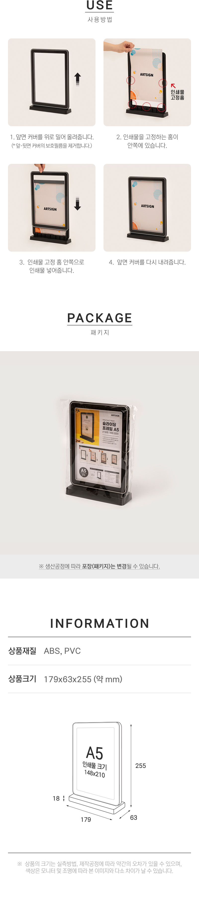 · 사용방법: 슬라이딩프레임에 인쇄물을 삽입하여 사용하세요.