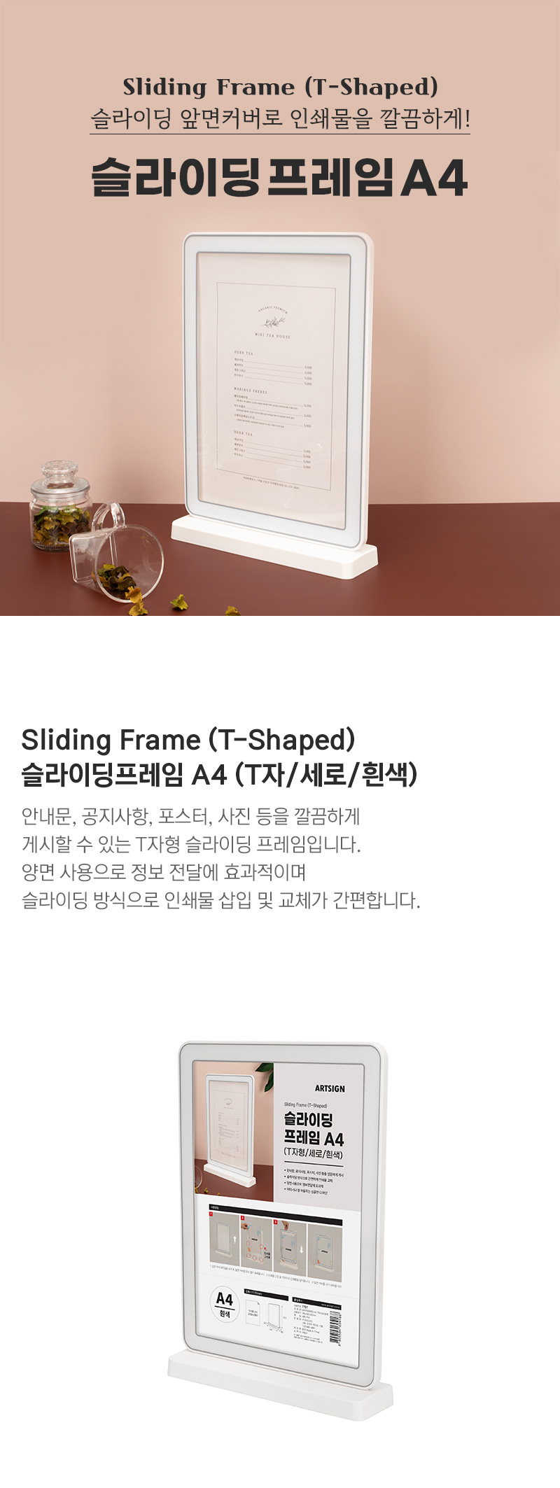 • 슬라이딩프레임A4(T자/세로/흰색)