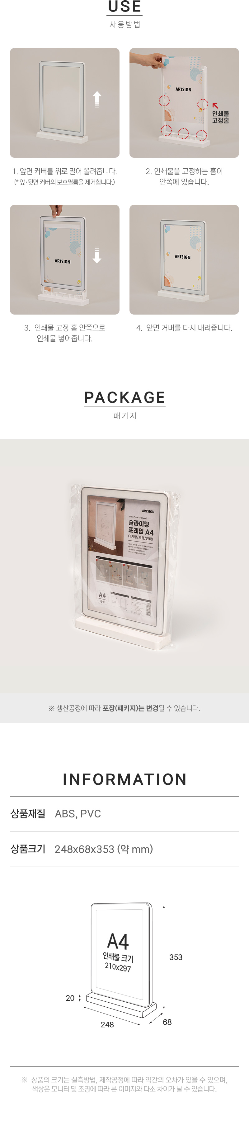 · 사용방법: 슬라이딩프레임에 인쇄물을 삽입하여 사용하세요.