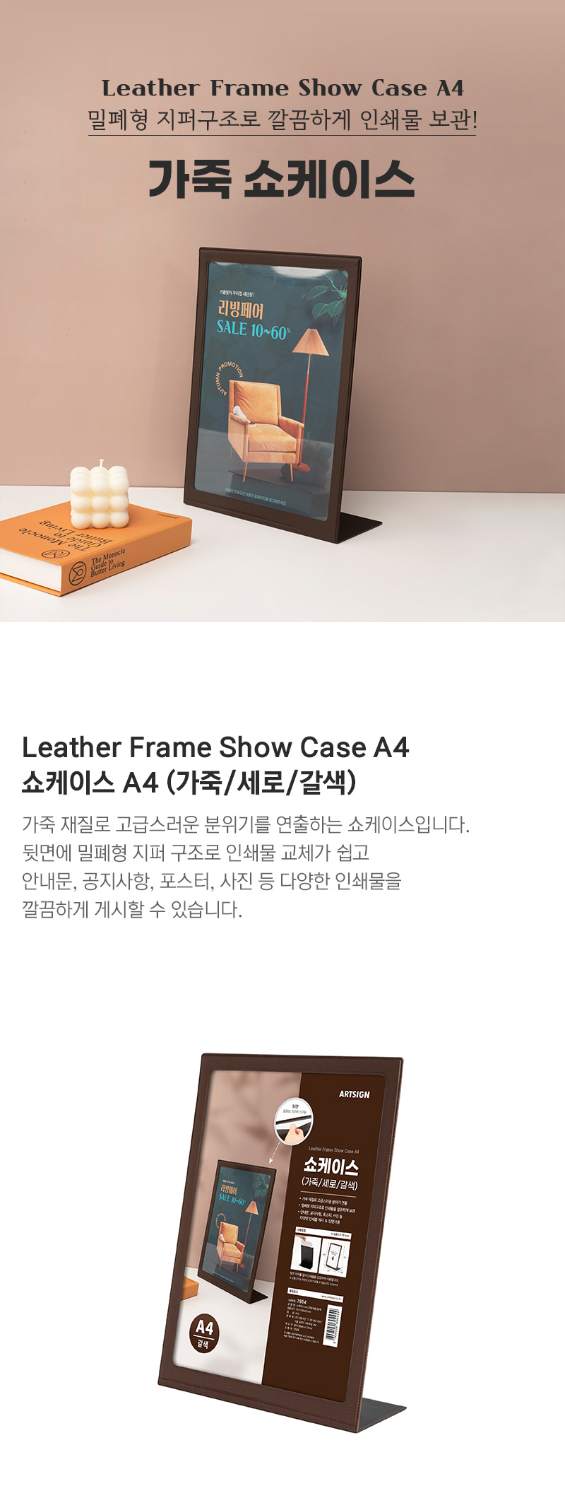 • 쇼케이스A4(가죽/세로/갈색)