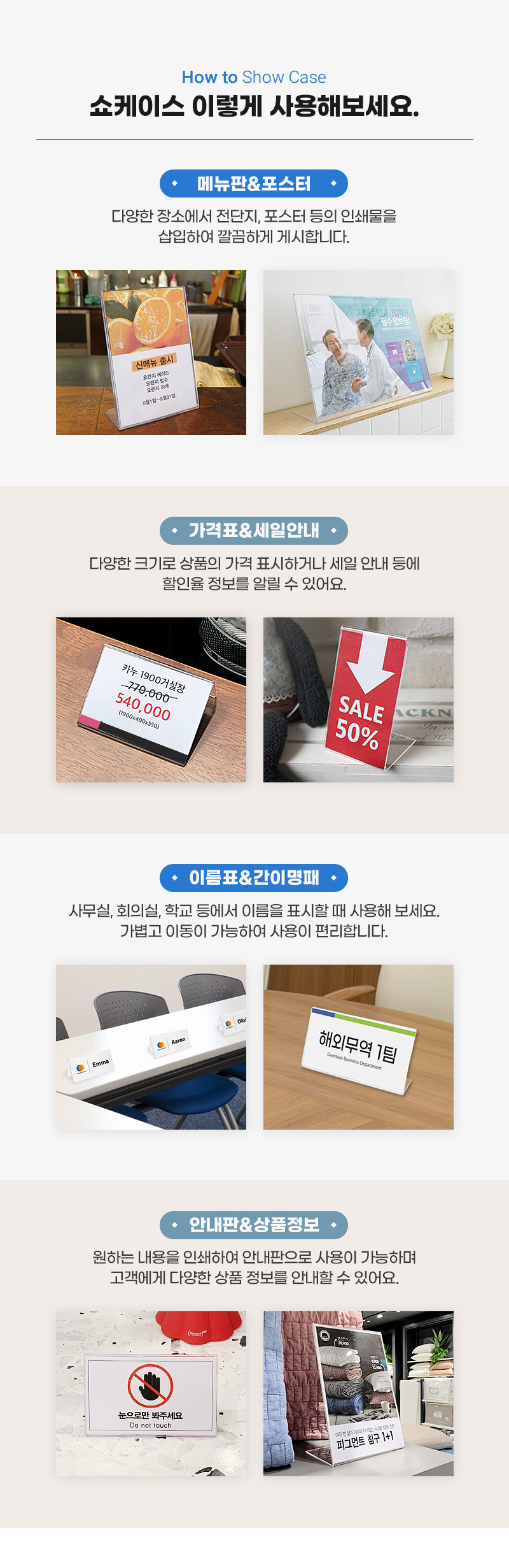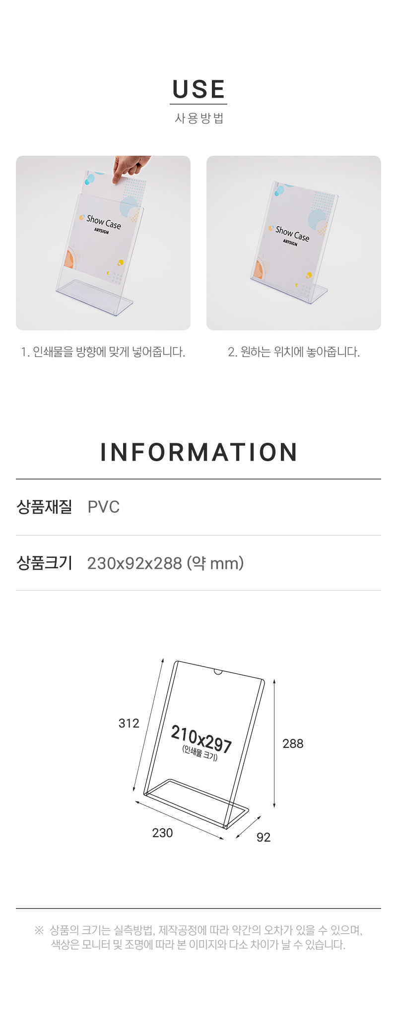 · 사용방법: 쇼케이스에 인쇄물을 삽입하여 사용하세요. |