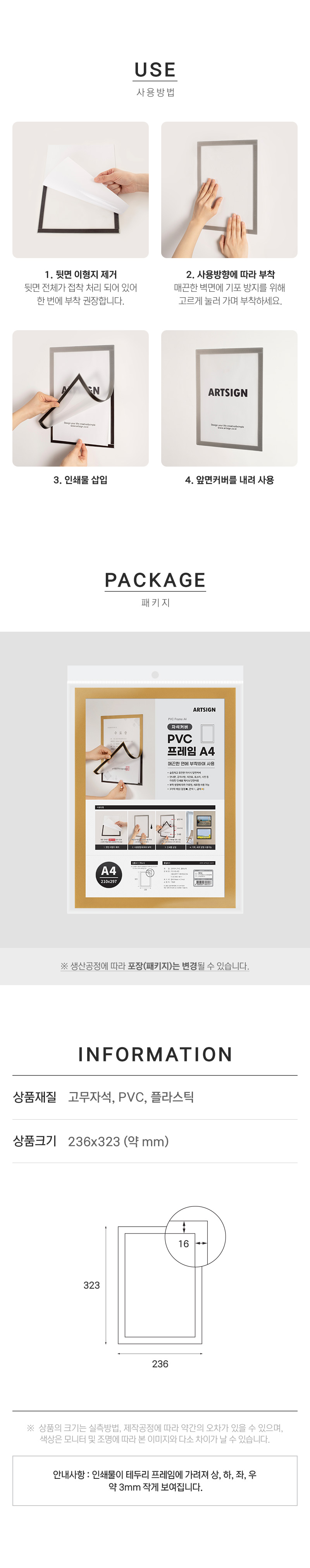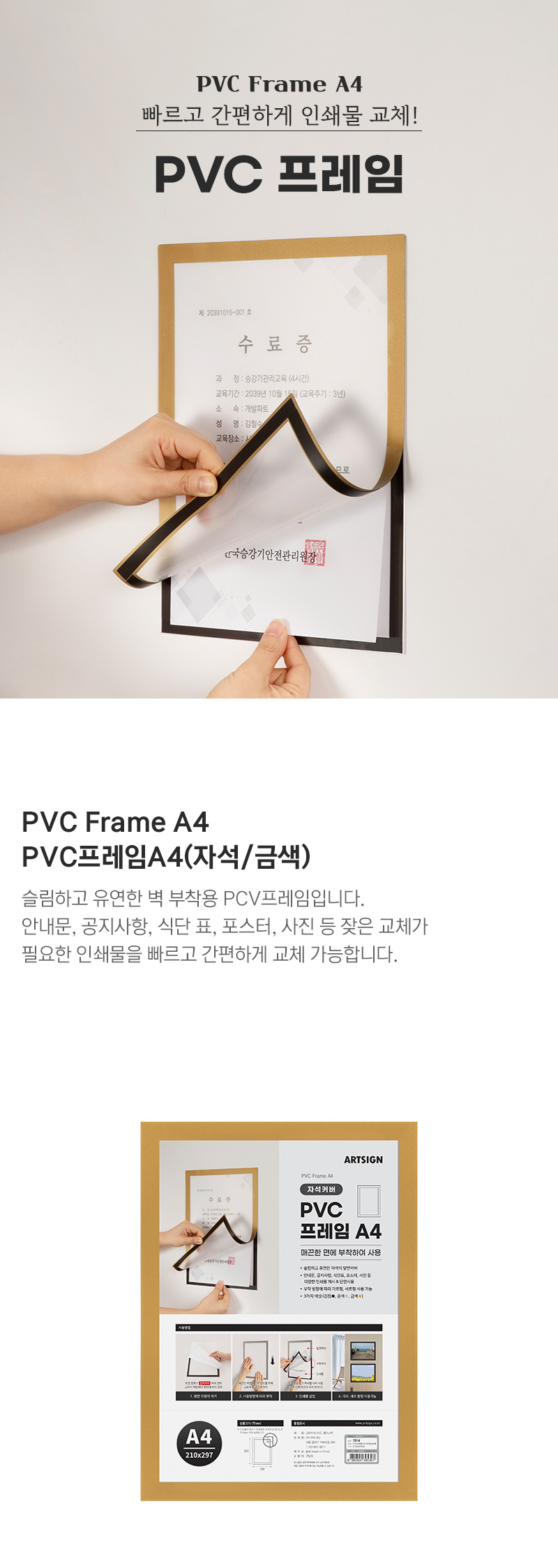 교체 가능한 벽 부착용 PCV프레임입니다.