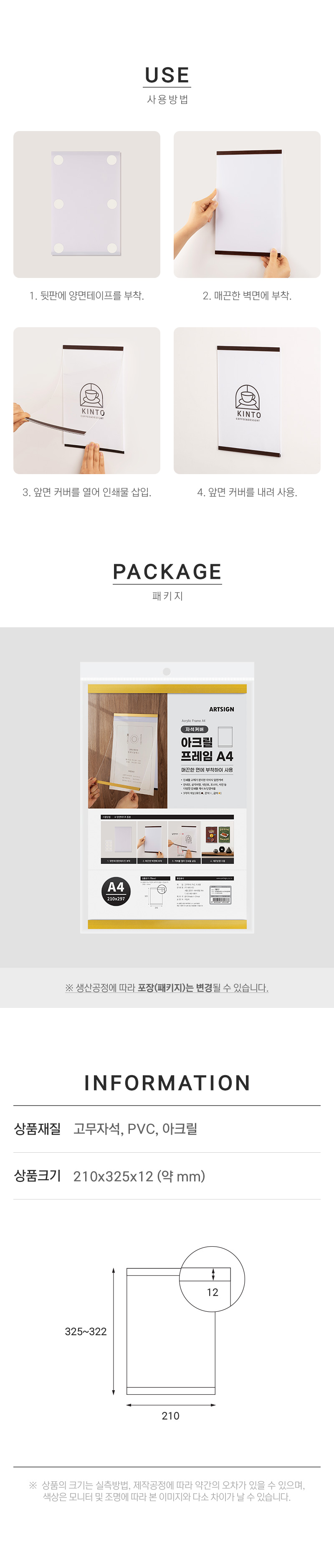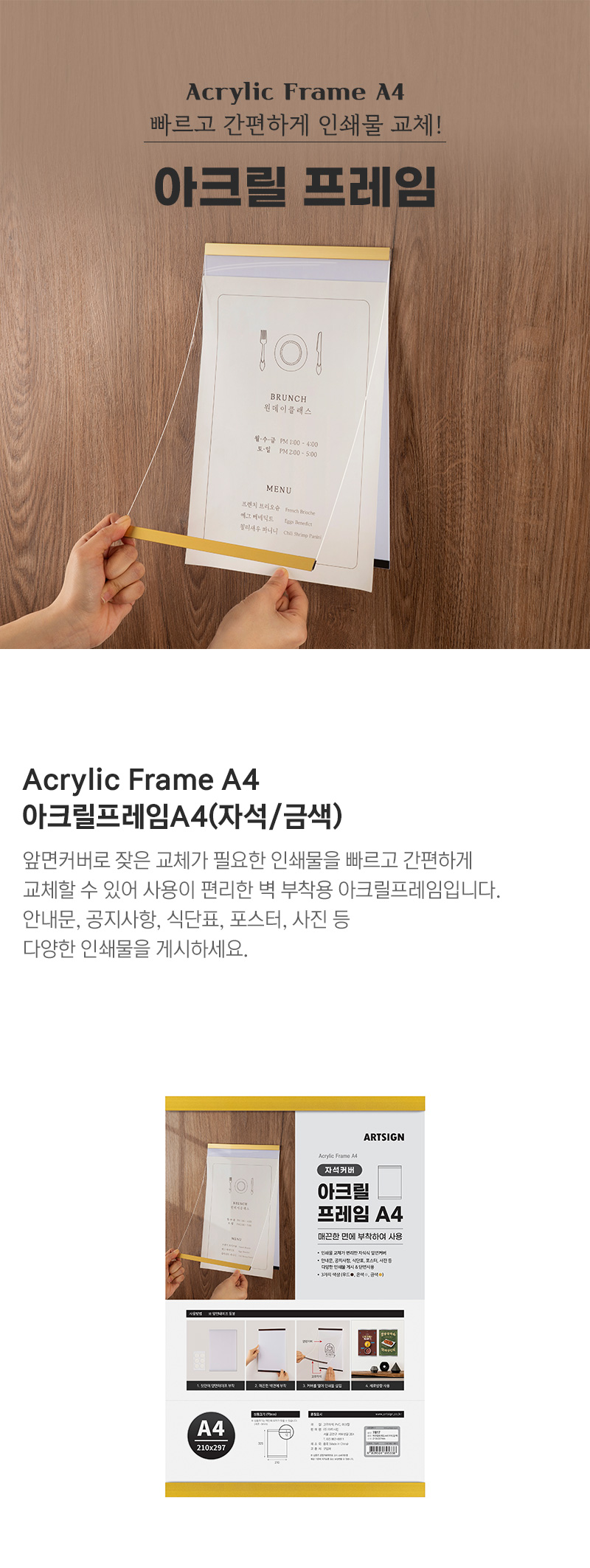 교체 가능한 벽 부착용 아크릴프레임입니다.