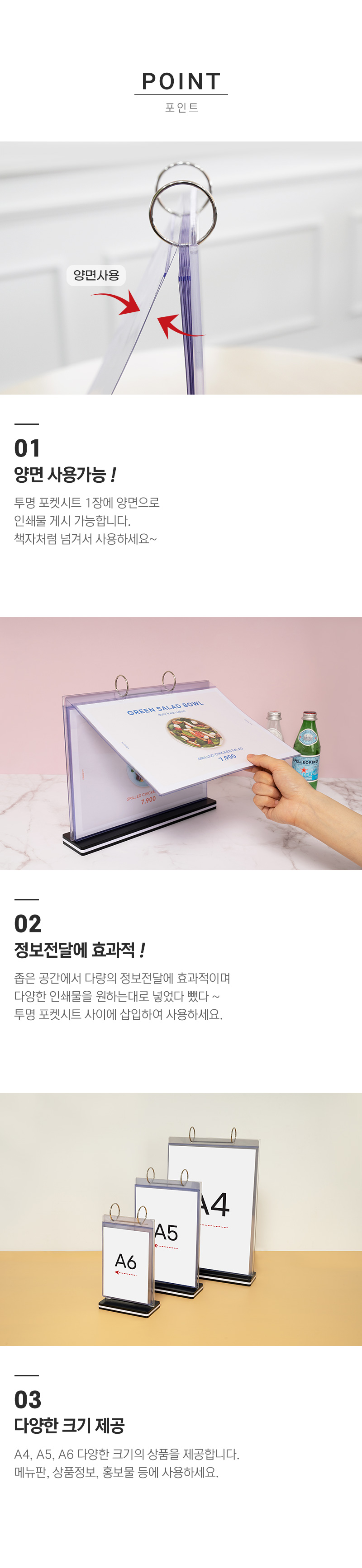 책자처럼 넘겨서 사용하는 투명 포켓시트!