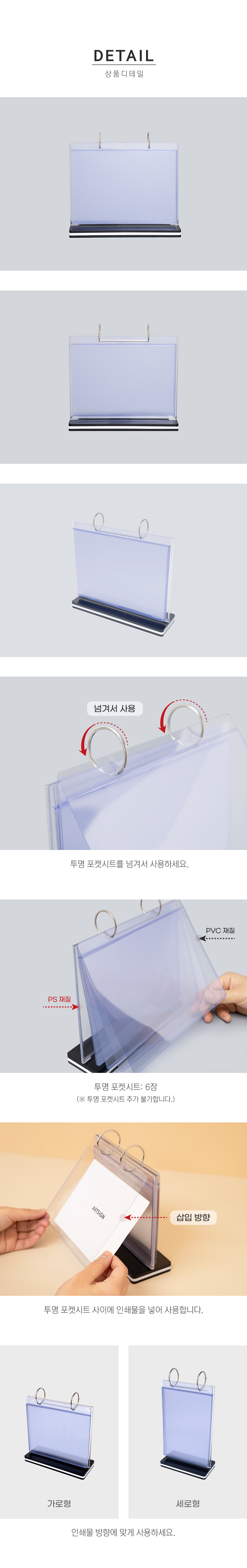 책자처럼 넘겨서 사용하는 투명 포켓시트!