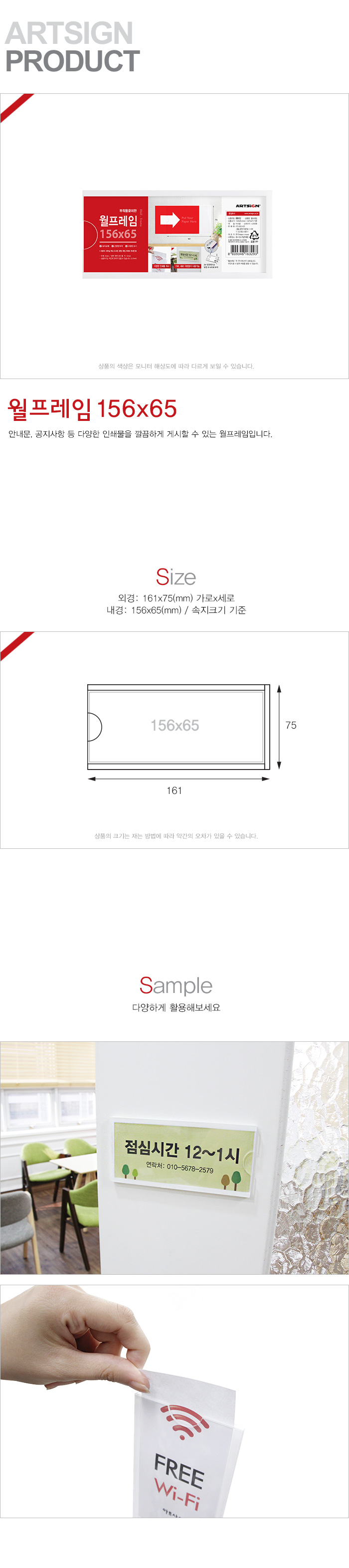 상품크기 외경: 161x75(mm) 가로x세로 / 내경: 156x65(mm) 속지크기 기준