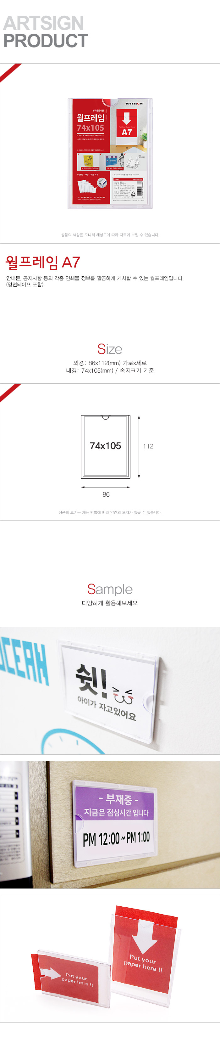 상품크기 외경: 86x112 (mm) 가로x세로, 내경: 74x105 (mm) / 속지크기 기준