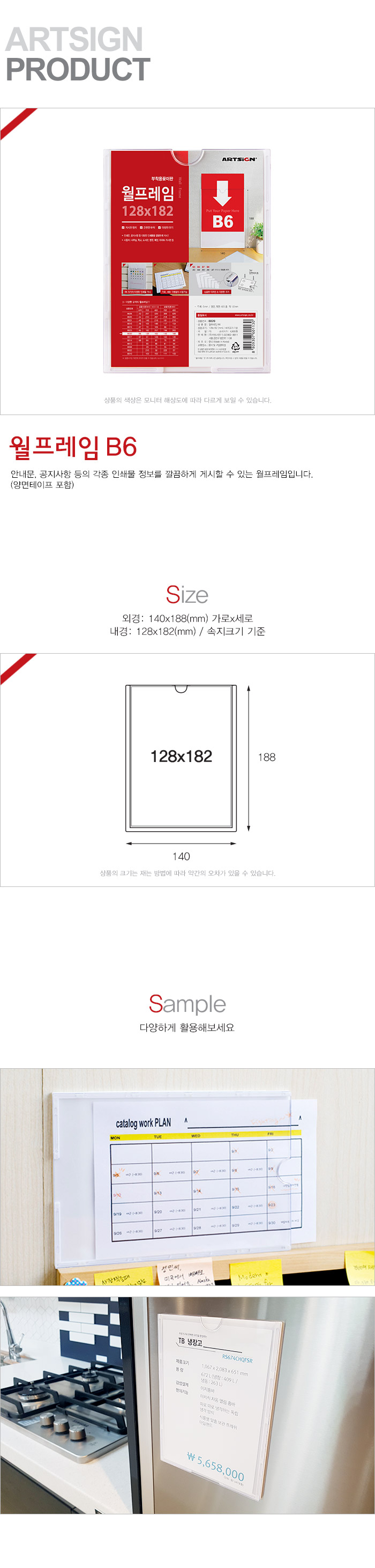상품크기 외경: 140x188 (mm) 가로x세로, 내경: 128x182 (mm) / 속지크기 기준