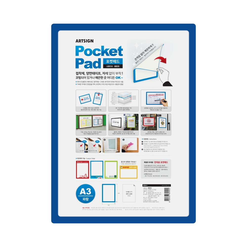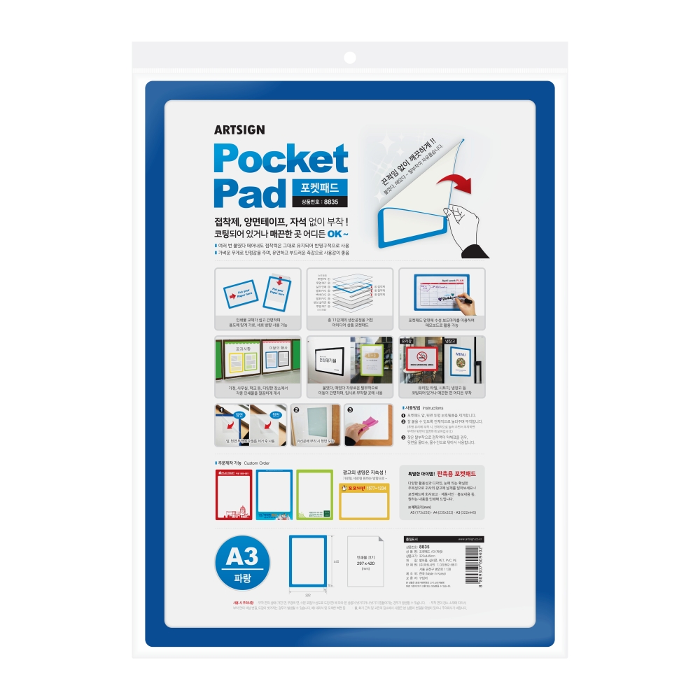 · 사용방법: 포켓패드 앞,뒷면에 보호필름 제거 후 매끈한 면에 부착하여 사용하세요.