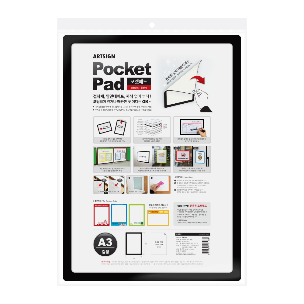 · 사용방법: 포켓패드 앞,뒷면에 보호필름 제거 후 매끈한 면에 부착하여 사용하세요.
