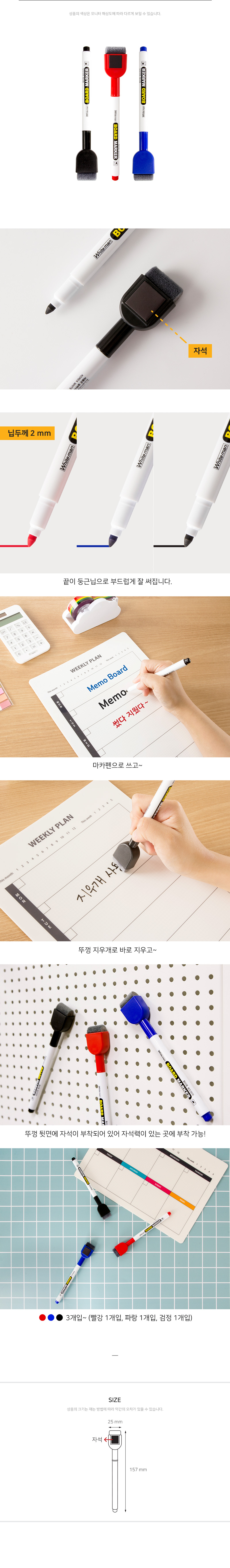 마카펜과 지우개가 함께 있어 사용이 편리하고 뚜껑 뒷면에 자석이 부착되어 있어