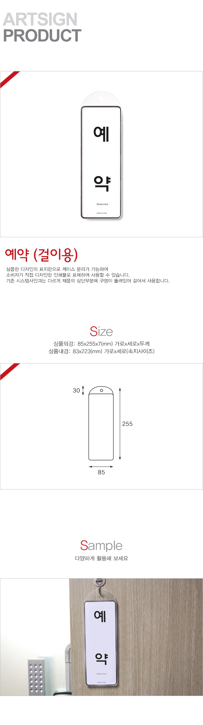 상품크기 외경: 85x255x7 (mm) 가로x세로x두께, 내경: 83x253(mm) / 속지크기 기준