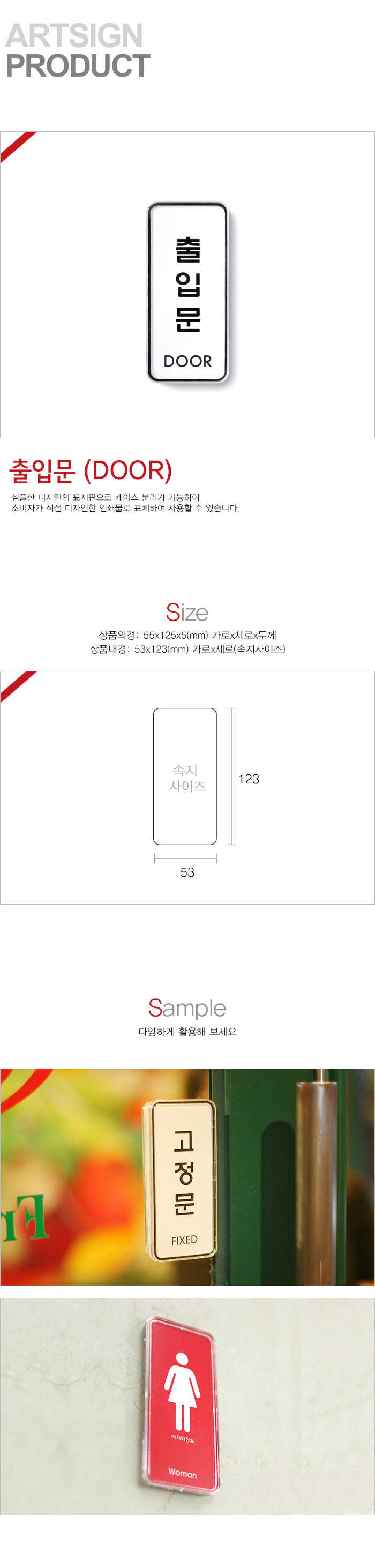 상품크기 외경: 55x125x5 (mm) 가로x세로x두께, 내경: 53x123(mm) / 속지크기 기준