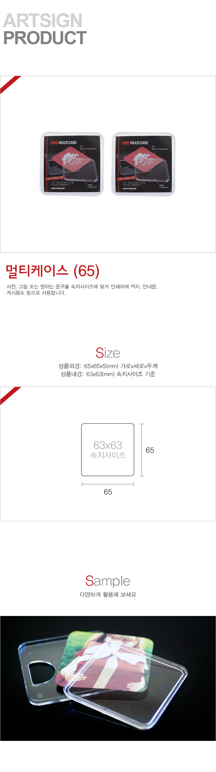 상품크기 외경: 65x65x5 (mm) 가로x세로x두께, 내경: 63x63(mm) / 속지크기 기준