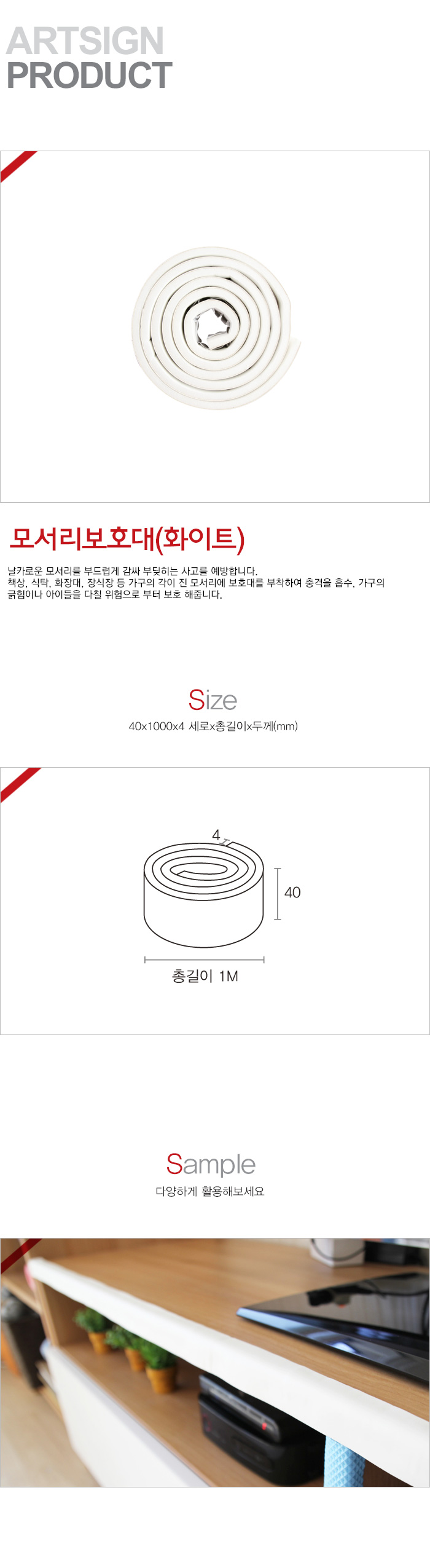 상품크기 40x1000x4 (mm) 가로x총길이x두께