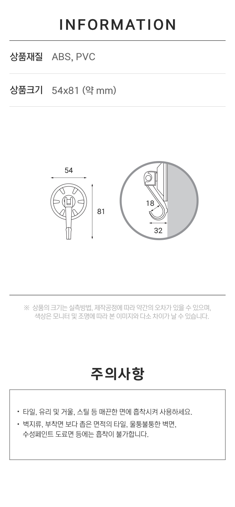 · 사용방법: 벽 면에 고리를 위에서 아래로 당겨 흡착시켜 사용하세요.